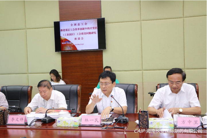 6月5日,全國(guó)總工會(huì)副主席、書記處書記蔡振華一行5人到??趪?guó)家高新區(qū)就“推進(jìn)基層工會(huì)改革創(chuàng)新中的開發(fā)區(qū)(工業(yè)園區(qū))工會(huì)建設(shè)問題研究”主題開展專題調(diào)研。省總工會(huì)黨組書記、常務(wù)副主席王全,市人大常委會(huì)黨組副書記、副主任,市總工會(huì)黨組書記、主席方中里,高新區(qū)管委會(huì)主任林一民等陪同。在高新區(qū)工會(huì)的推薦下,海南長(zhǎng)安國(guó)際制藥有限公司作為企業(yè)代表出席本次調(diào)研會(huì)議。