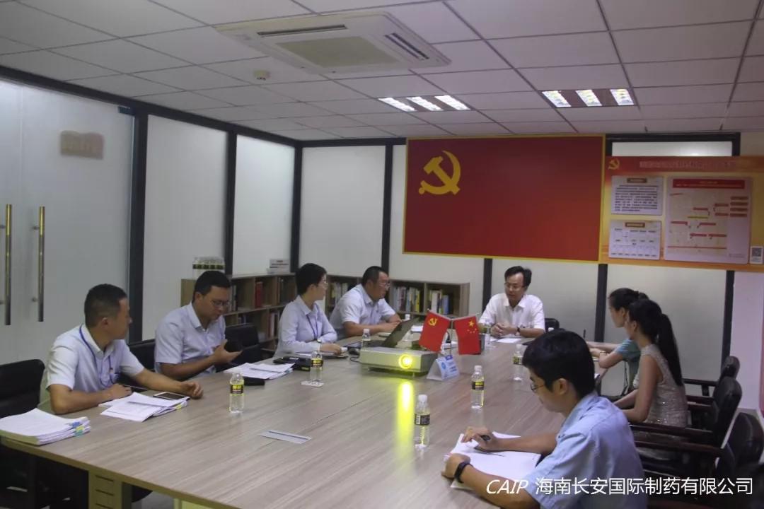 7月26日下午,高新區(qū)黨工委郭志偉副書記一行三人,蒞臨海南長安國際制藥有限公司黨支部調(diào)研指導(dǎo)黨建學(xué)習(xí)情況,長安制藥黨支部汪立冬書記協(xié)同長安制藥黨支部和高新區(qū)藥谷一期(國科園)流動(dòng)黨支部各黨員、預(yù)備黨員、積極分子出席本次會(huì)議。