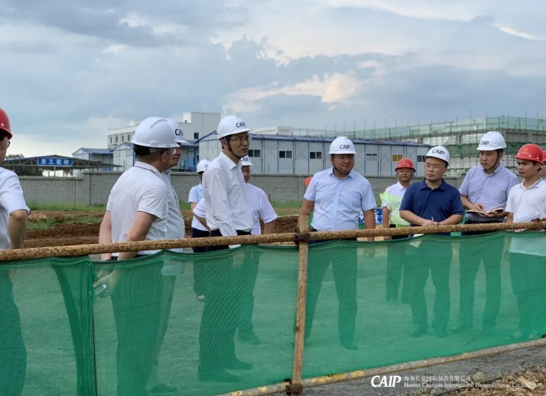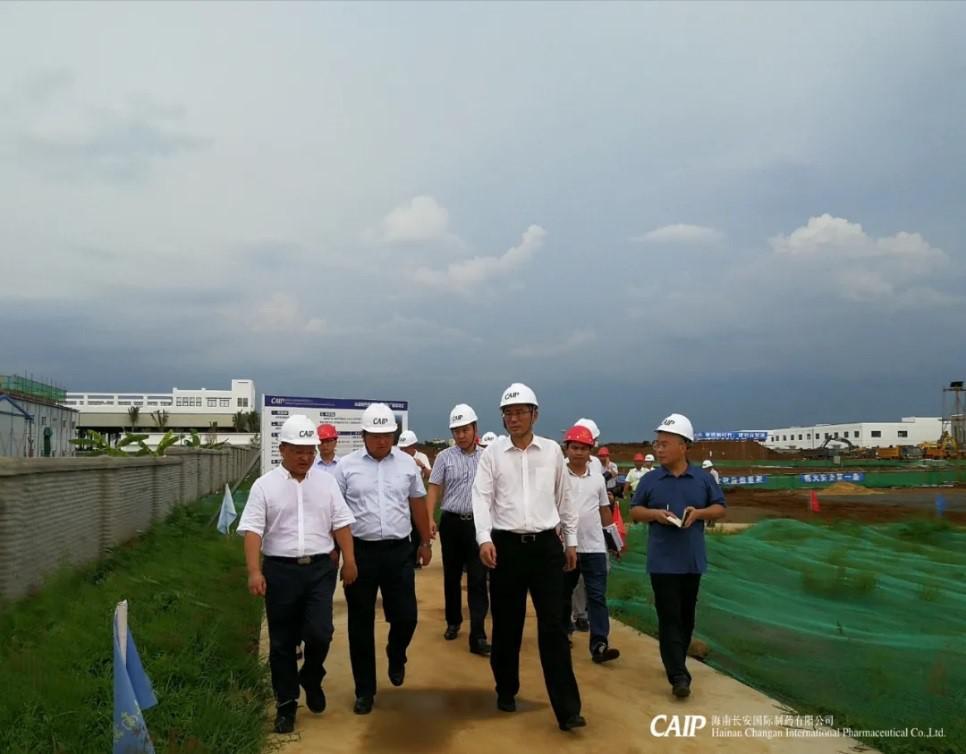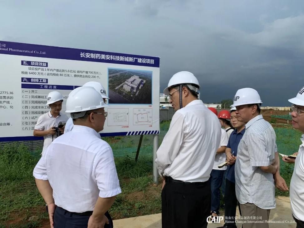 6月6日,海南省委常委、海口市委書記何忠友一行領(lǐng)導(dǎo)蒞臨長安制藥美安科技新城新廠建設(shè)項目考察調(diào)研。??谑形N?、副市長鞠磊,??谑形N⒚貢L林海寧,??谑懈笔虚L沈繼奔及高新區(qū)管委會主任劉立武等領(lǐng)導(dǎo)一同參加調(diào)研活動,海南長安制藥總經(jīng)理汪立冬陪同調(diào)研組并詳細介紹美安新廠項目進展情況。