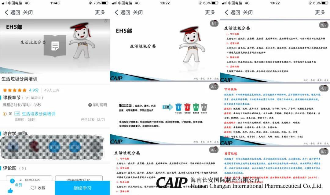 當(dāng)天,長安制藥還通過網(wǎng)上益佰云學(xué)院對全體員工進行了“生活垃圾分類”的在線培訓(xùn),確保廣泛深入、全面系統(tǒng)的對員工了解并熟知生活垃圾四分類原則、垃圾投放要求、垃圾收運過程、全公司分類垃圾桶設(shè)置等。