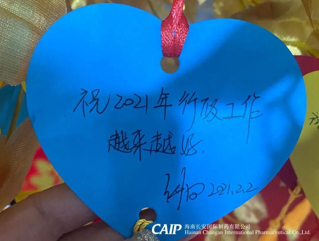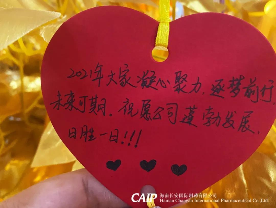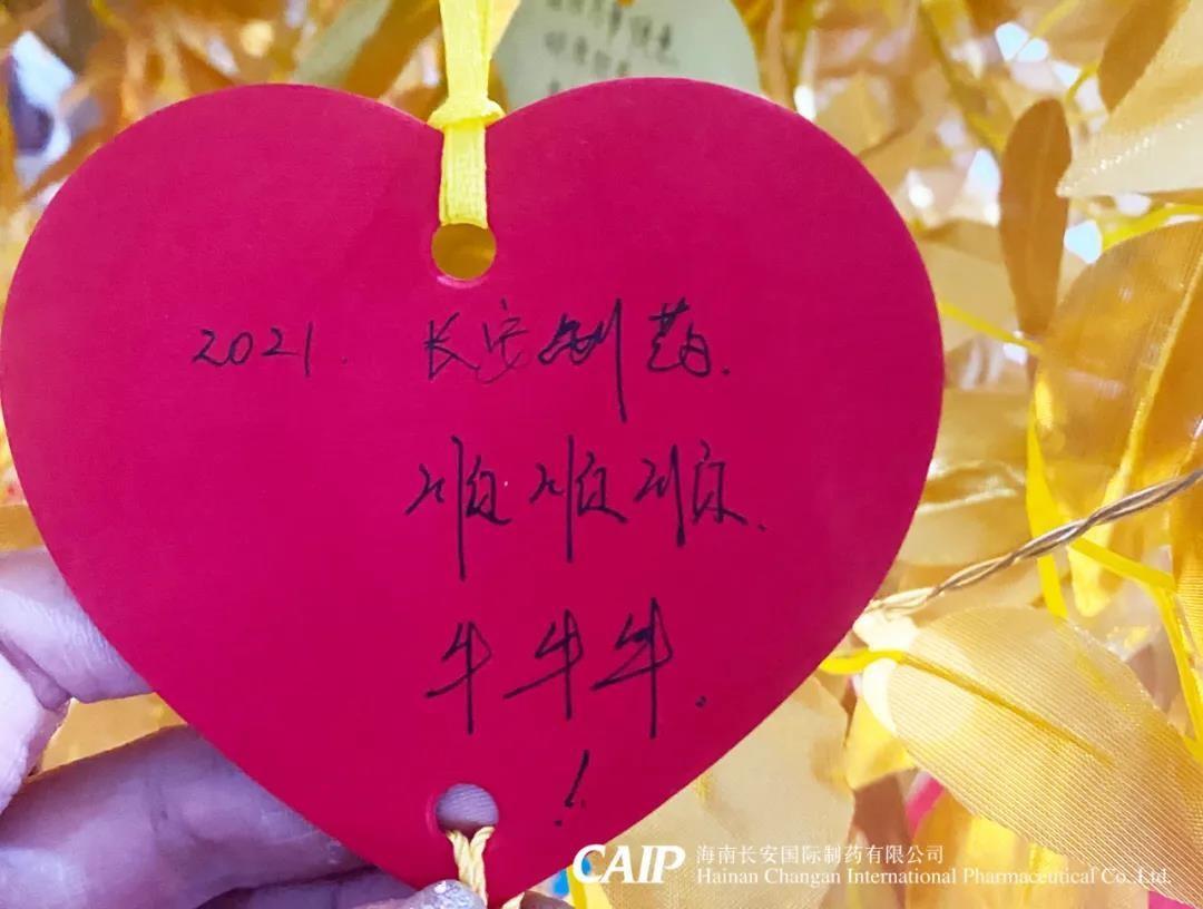 許下心愿的同事們臉上洋溢著快樂(lè)的微笑,一張張的心型的祝??ㄆ粧煸诮鹕脑S愿樹(shù)上,這些祝福中蘊(yùn)含著長(zhǎng)安人對(duì)辭別舊歲喜迎新年的美好愿景和內(nèi)心最深處的愛(ài)意,同時(shí)也包括了同事們對(duì)長(zhǎng)安制藥的真切祝福,對(duì)同事的美好祝愿,對(duì)個(gè)人未來(lái)的美好憧憬。