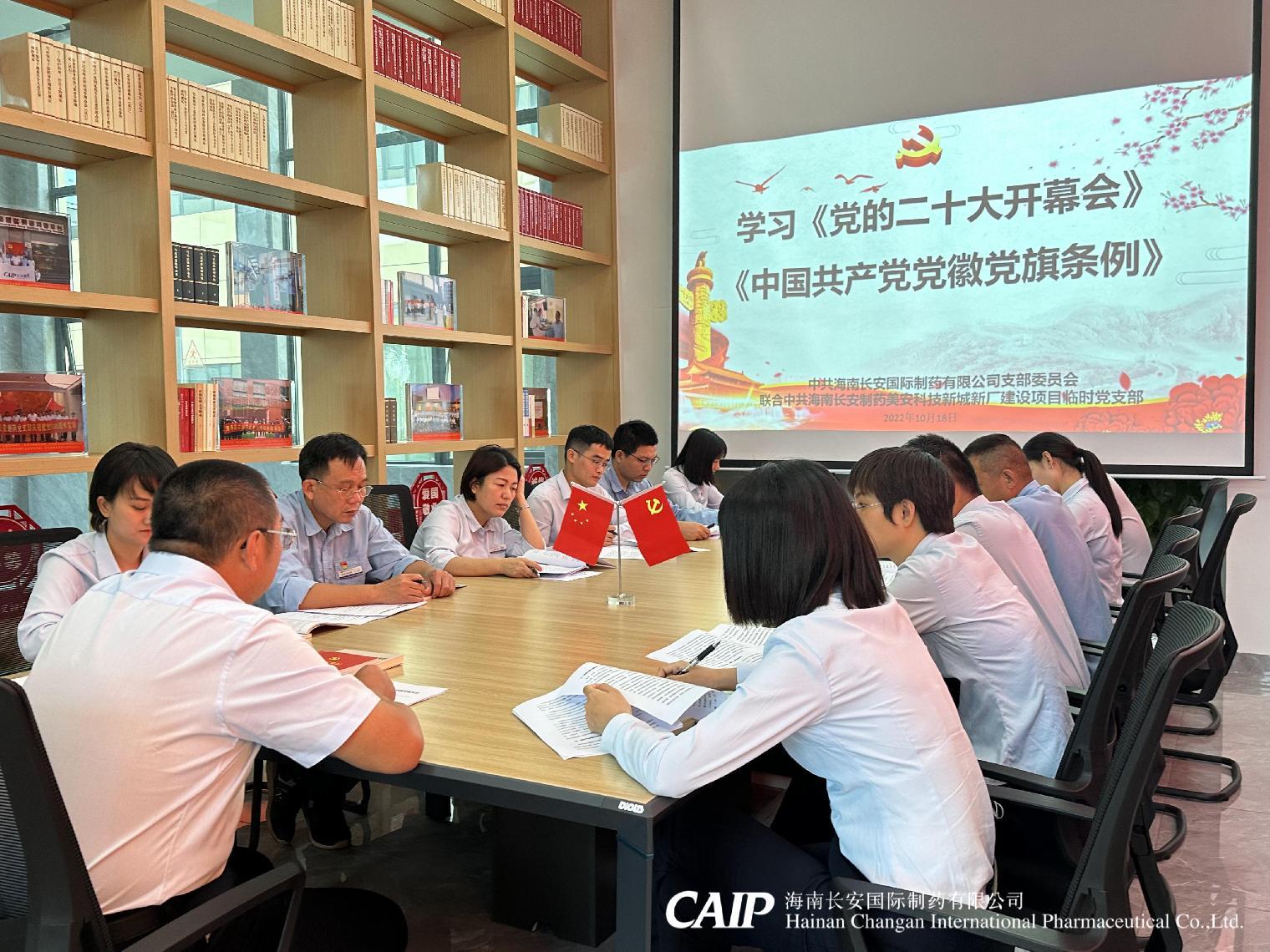 10月18日長安制藥黨支部聯(lián)合長安制藥美安科技新城新廠建設(shè)項(xiàng)目臨時(shí)黨支部,在美安廠區(qū)黨建會議室開展黨支部書記上黨課,學(xué)習(xí)《黨的二十大開幕會報(bào)告內(nèi)容》 及《中國共產(chǎn)黨黨徽黨旗條例》。