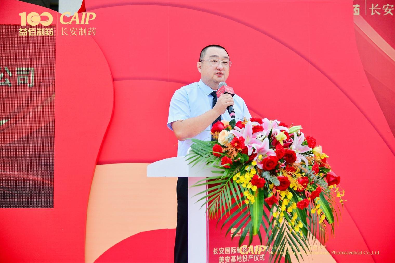 長安制藥總經理汪立冬在致辭中對蒞臨的嘉賓和領導表示熱烈的歡迎,對各級政府和合作單位表示衷心的感謝。他指出:海南長安國際制藥有限公司美安基地是根據(jù)習近平總書記“4.13”重要講話精神及海南自由貿易港出臺的相關政策,貴州益佰制藥在海南進行產業(yè)結構重要升級的具體體現(xiàn)。海南自貿港總體方案落地以來,高新區(qū)全面落實中央和省委、市委各項決策部署,各級政府多舉并措為企業(yè)發(fā)展提供優(yōu)質服務,不斷優(yōu)化營商環(huán)境,在政府的大力幫助下,長安制藥美安科技新城基地于2019年11月順利動工,并于2022年11月23日如期順利投產。接下來,長安制藥將切實扛起加快建設海南自由貿易港的使命擔當,堅定擁護“兩個確立”、堅決做到“兩個維護”,結合二十大報告中提出的“推進健康中國建設”的任務,深耕制藥產業(yè),秉持守正創(chuàng)新的發(fā)展理念,為海南自貿港制藥產業(yè)發(fā)展貢獻更大力量。
