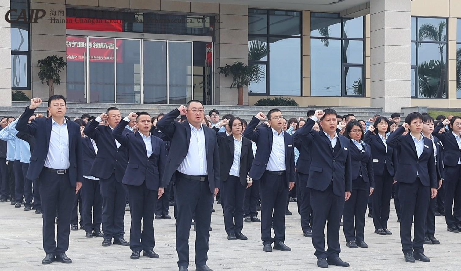 儀式啟幕,莊嚴(yán)肅穆。全體員工整齊列隊,精神抖擻。英姿颯爽的護旗手邁著鏗鏘有力的步伐走向升旗臺。在激昂的國歌聲中,鮮艷的五星紅旗緩緩升起,長安制藥全體員工莊嚴(yán)肅立,向國旗行注目禮,這一刻,國旗承載著全體員工對國家繁榮昌盛的美好祝愿,一同升起的司旗也象征著企業(yè)在新的一年里,為海南自由貿(mào)易港醫(yī)藥產(chǎn)業(yè)發(fā)展貢獻力量的堅定決心。