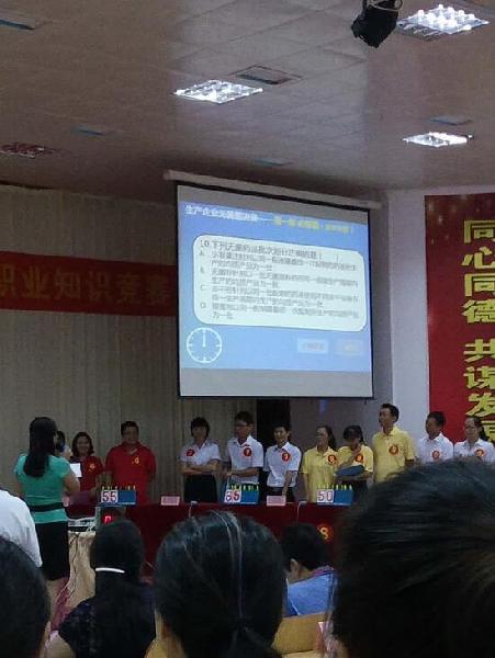 經(jīng)過三個月的初賽、復(fù)賽迎來了今天的決賽,生產(chǎn)企業(yè)無菌組決賽共分為三個環(huán)節(jié):必答題,搶答題,風(fēng)險題。在決賽的現(xiàn)場,我們參賽選手反應(yīng)迅速,密切配合,展現(xiàn)豐富的知識,秀出了我們的風(fēng)采。我們公司啦啦隊穿著統(tǒng)一服裝來到現(xiàn)場為我們的選手吶喊、助威!并秀出我們公司的口號“秀出自信,展現(xiàn)自我,非比尋常,長安最強(qiáng)”。