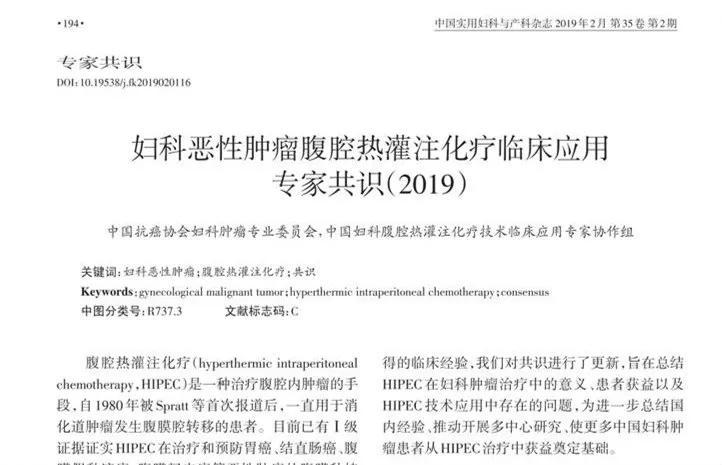 2017年,中國婦科腫瘤專家遵循循證醫(yī)學原則,對應用HIPEC治療婦科腫瘤的證據(jù)進行了總結,并以此為依據(jù)制定了我國首部《婦科腫瘤腹腔熱灌注治療臨床應用專家共識》。2017年后,HIPEC技術的合理運用和臨床經(jīng)驗又獲得了更進一步的進展。