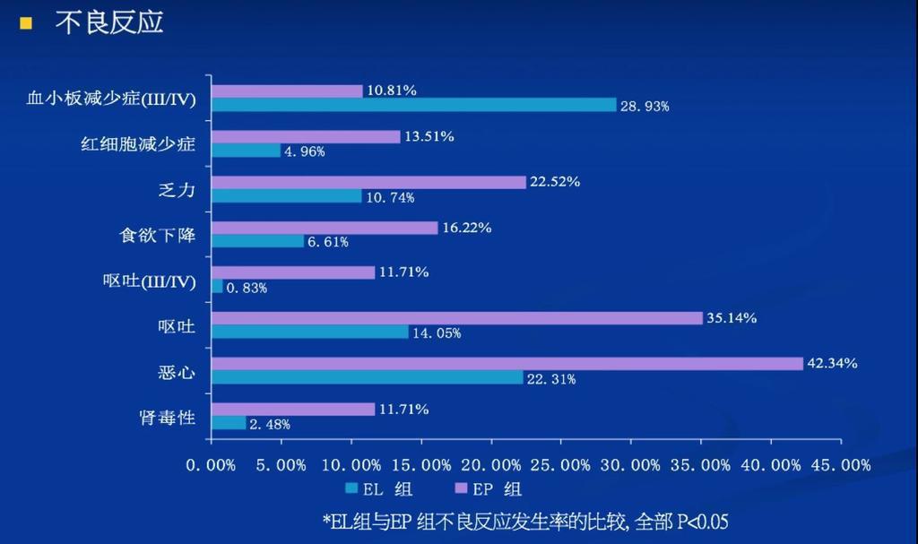 2、洛鉑+依托泊苷方案安全性和生活質(zhì)量顯著優(yōu)于順鉑+依托泊苷方案。