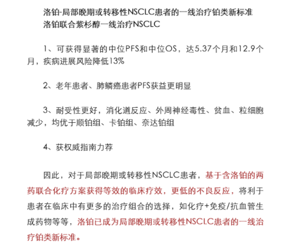 洛鉑作為一線化療方案藥物連續(xù)4年被"CSCO原發(fā)性肺癌診療指南"推薦!